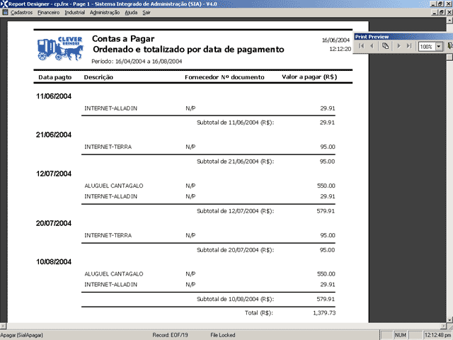 parceladas, com moras de atrazo e pagamentos em "PREVISÃO". |